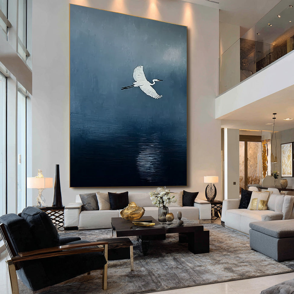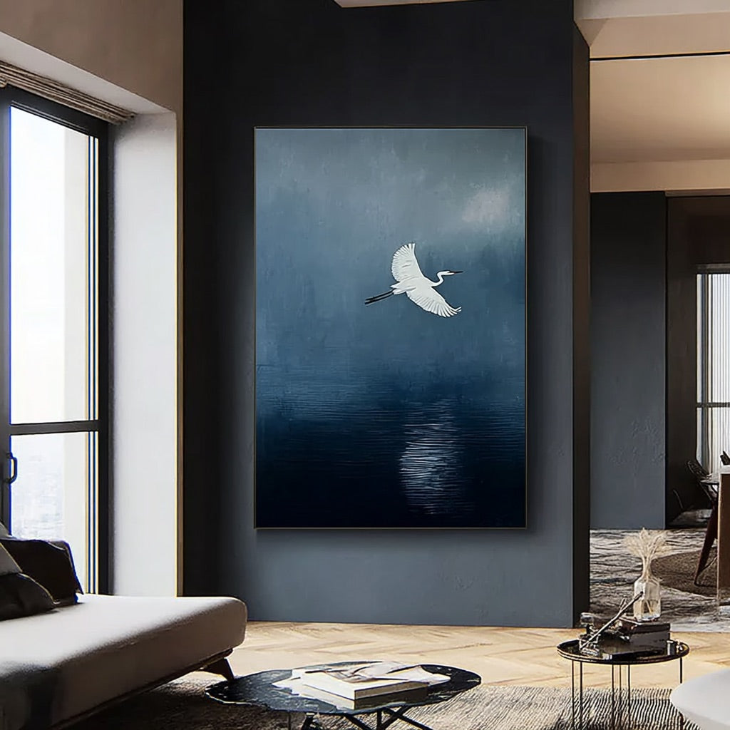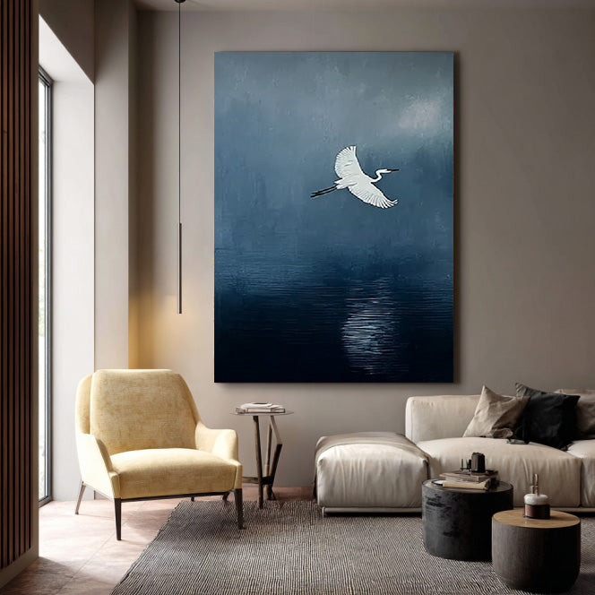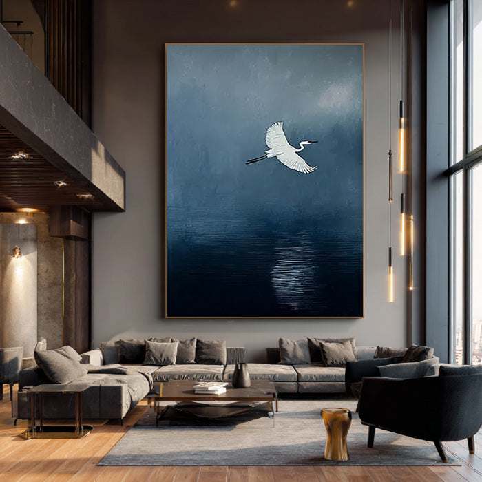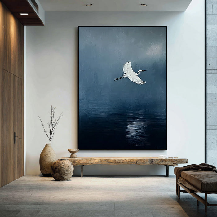A Streak of White - Large Minimalist Egret Wall Art