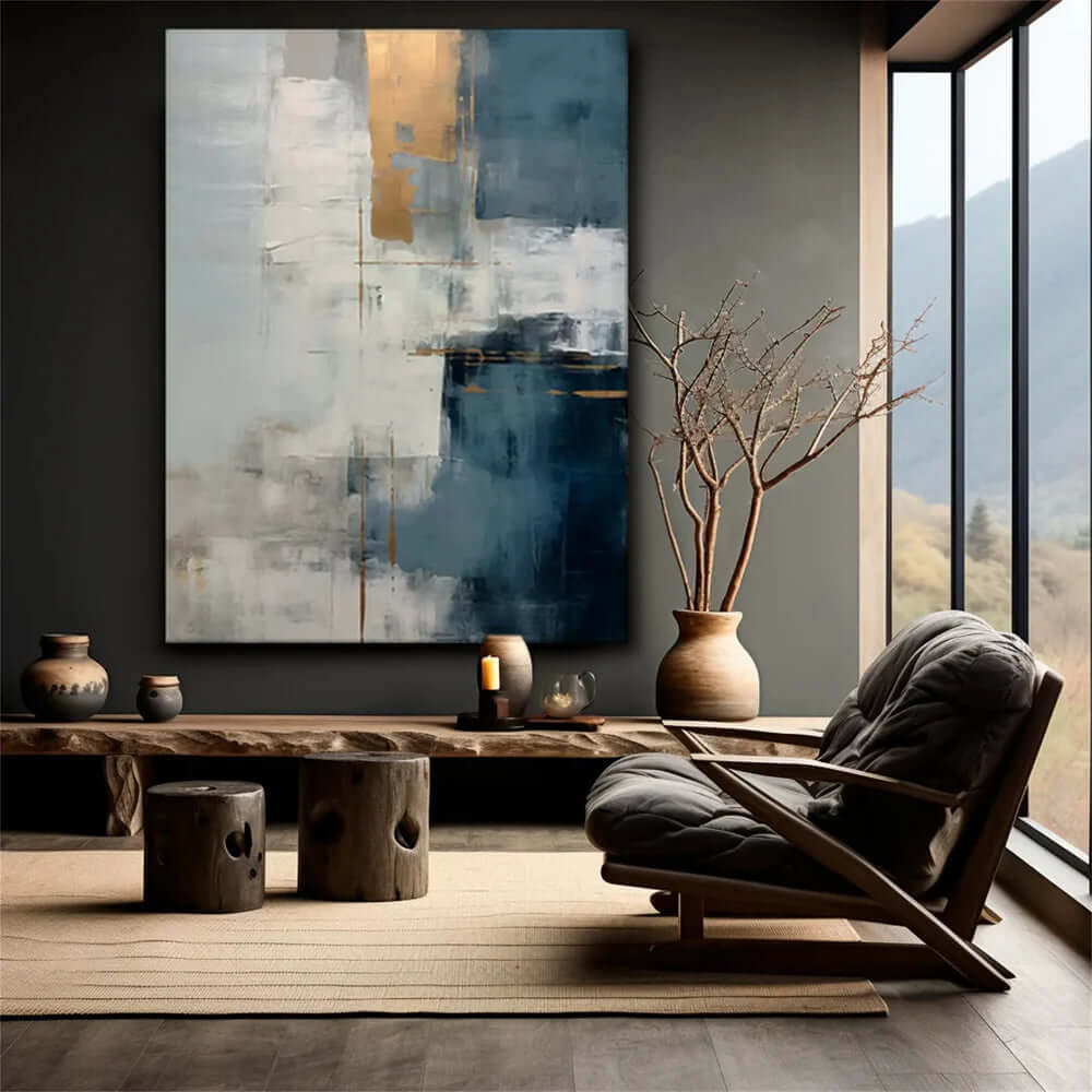 Blue Division - Modern Blue and Gold Abstract Canvas Art