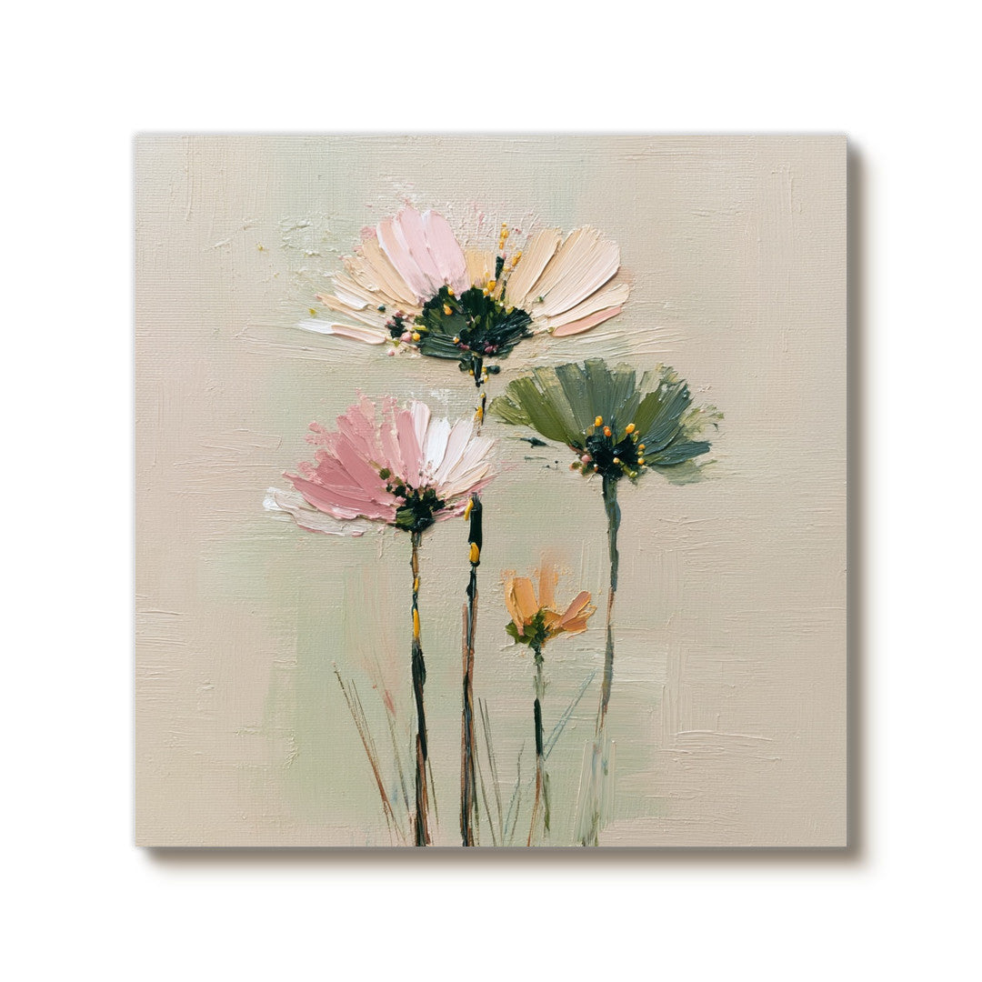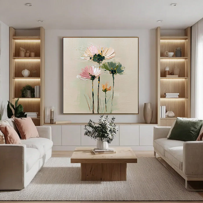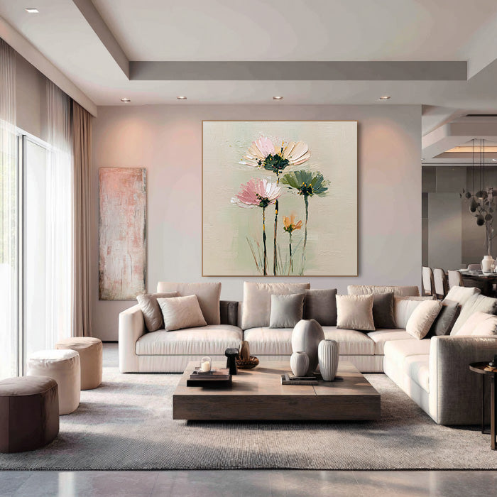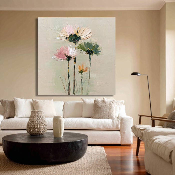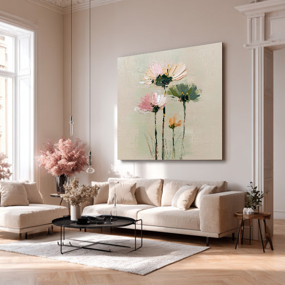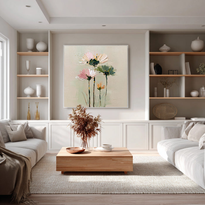 Cosmos Under the Sun - Modern Luxury Large Textured Floral Canvas