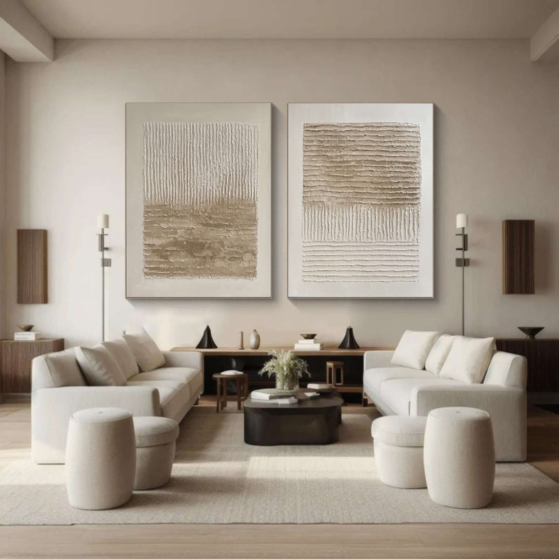 Contemporary Neutral Art Set - Handcrafted Beige Abstract Textures - Earthen Reverie - Hues Art Lab