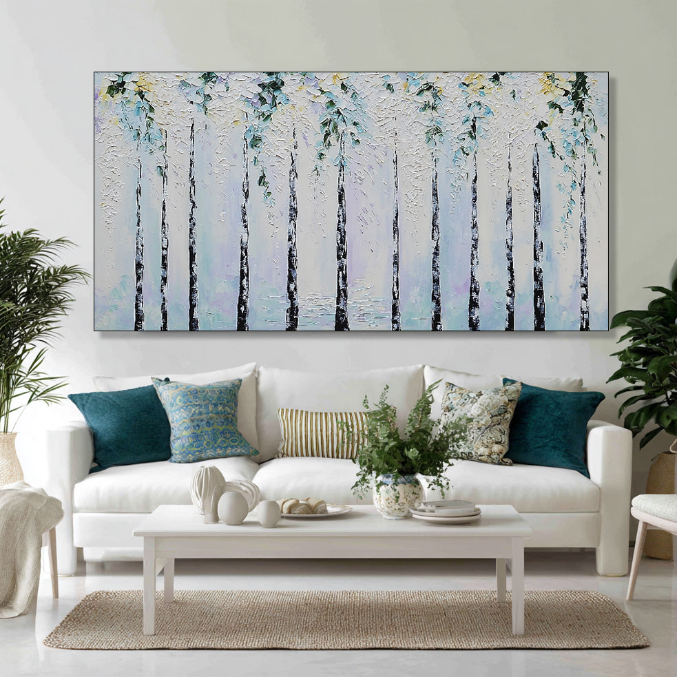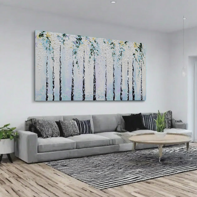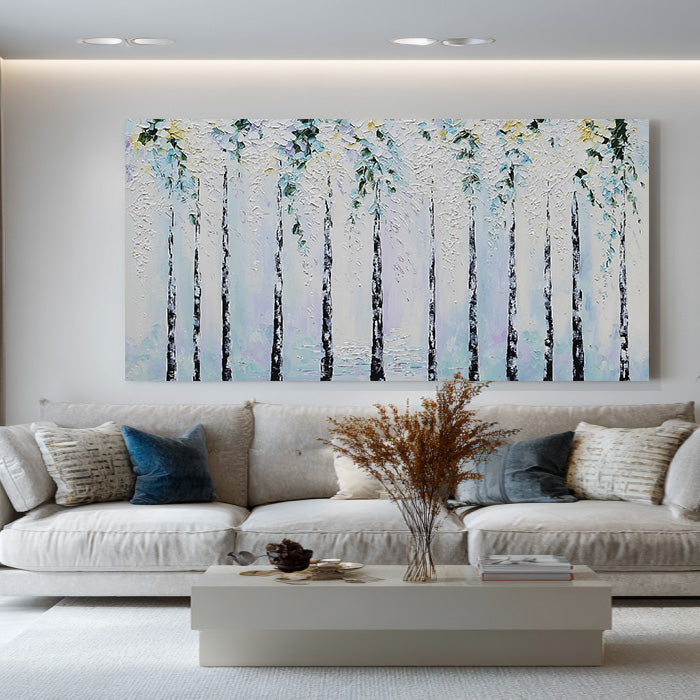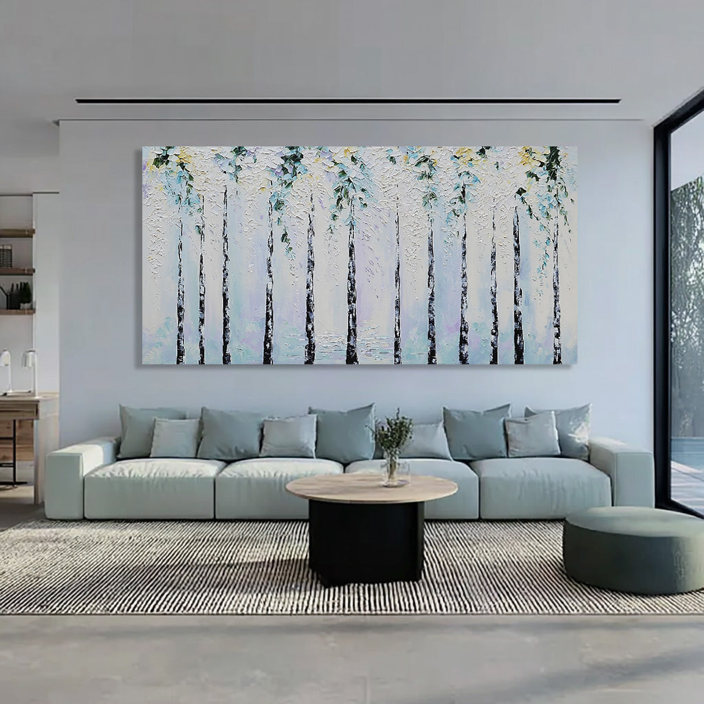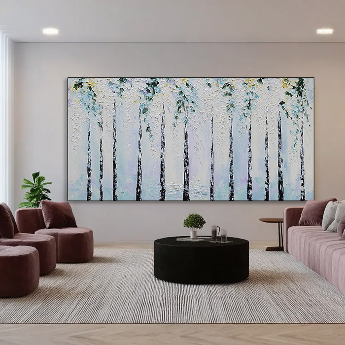 Elegy of the Birch Grove - Modern Impasto Abstract Birch Forest Wall Art