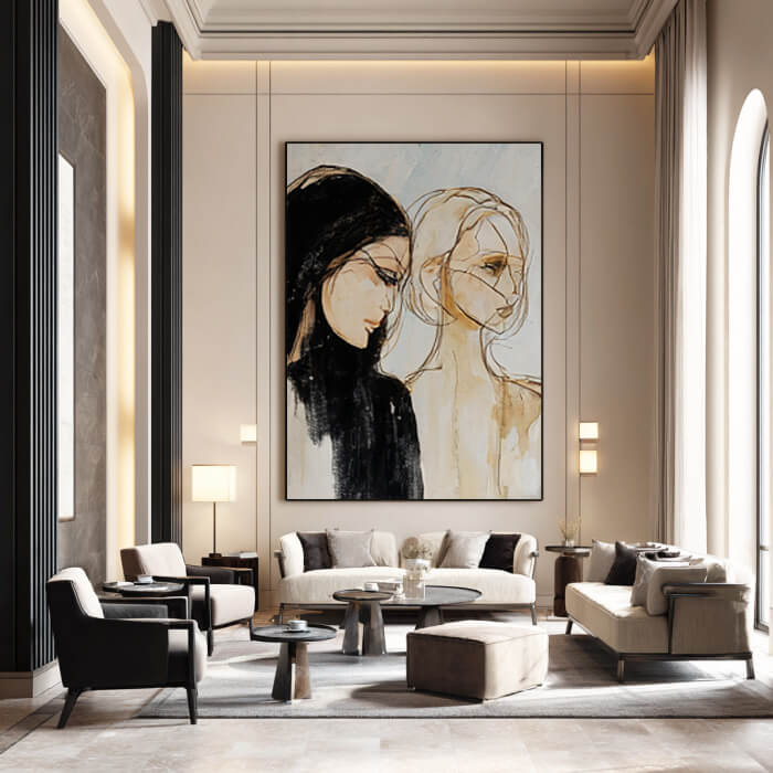 Expressive Silhouettes - Large Modern Minimalist Duo Portrait Wall Art