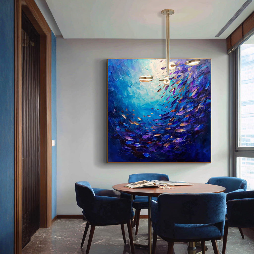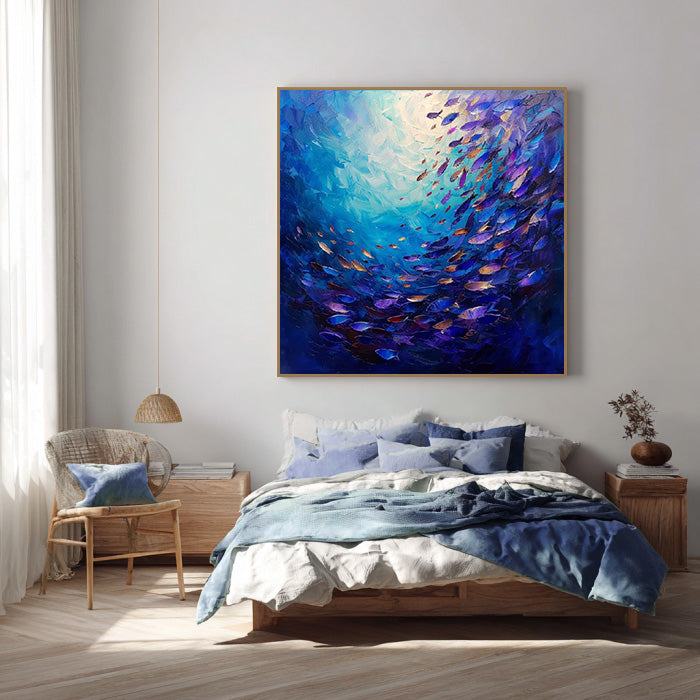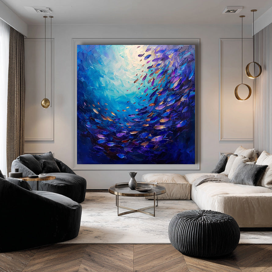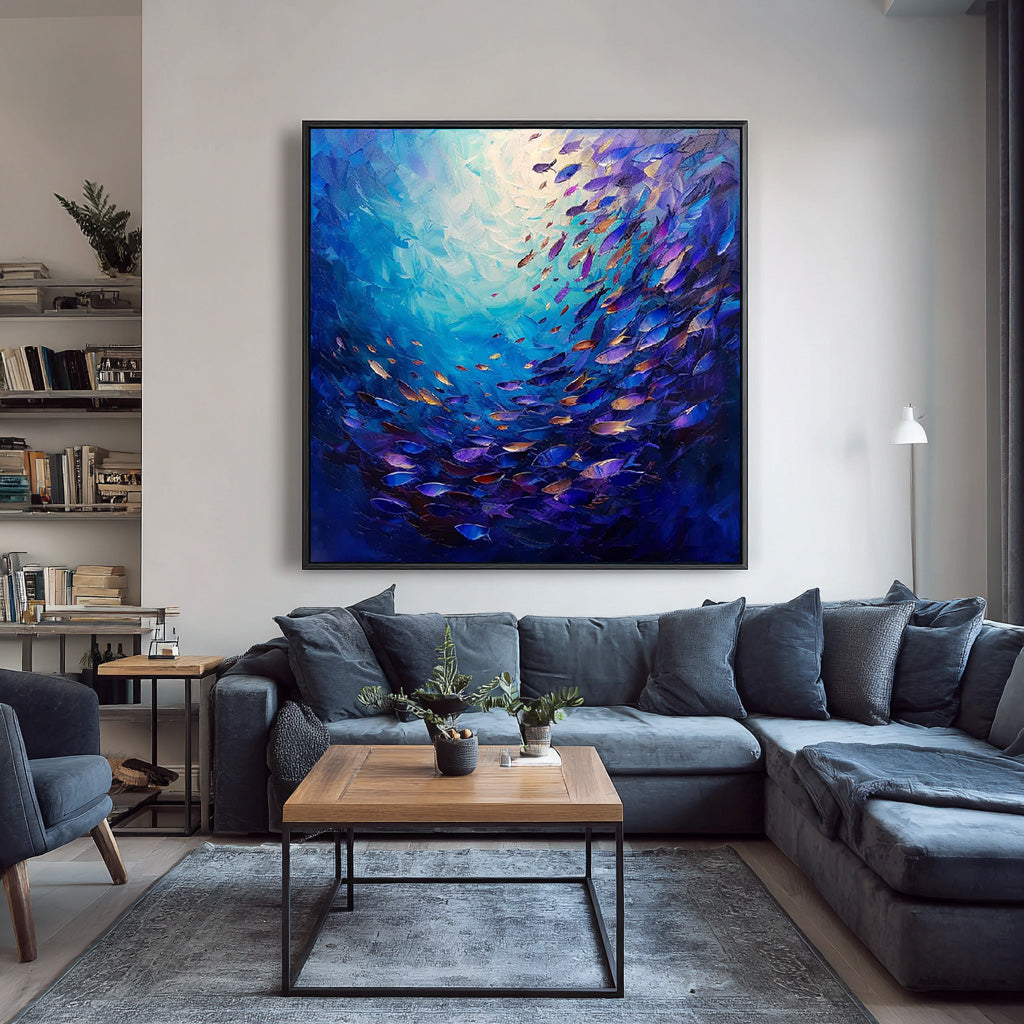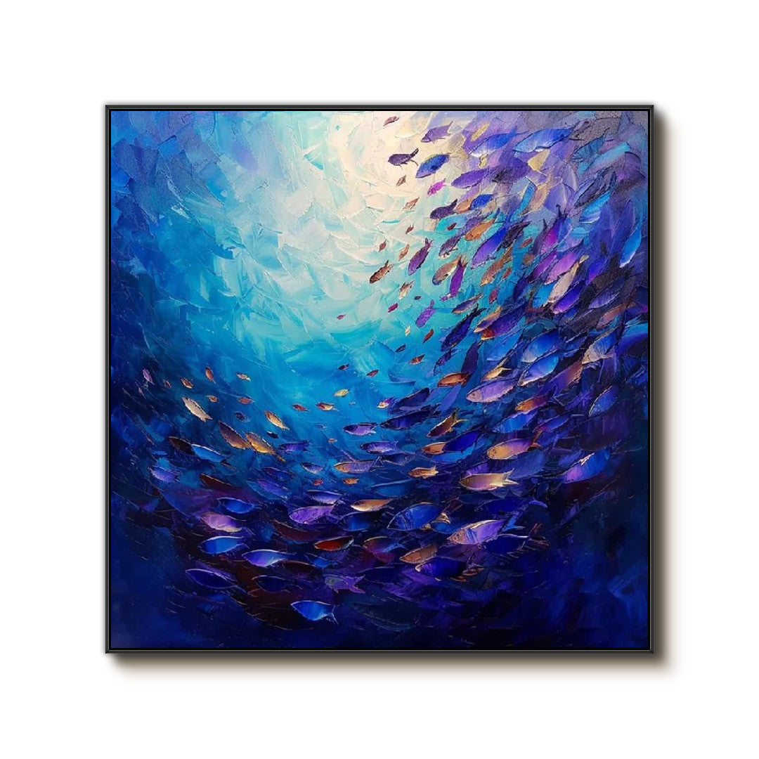 Fish Swirl - Deep Sea Fish School Impasto Wall Art