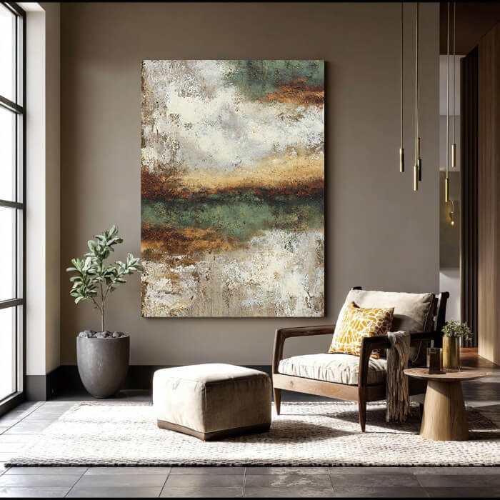 Misty Forest Plains - Large Earthy Tone Impasto Texture Wall Art