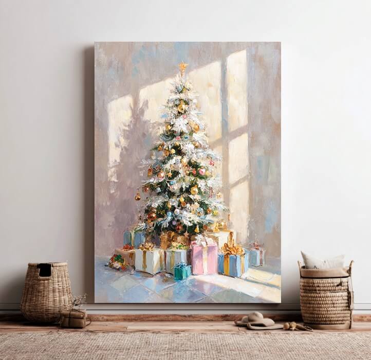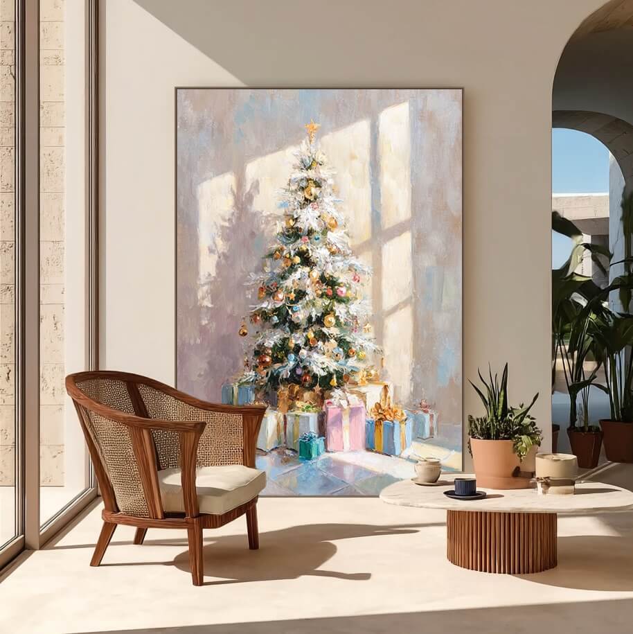 Morning of Christmas - Hand-Painted Christmas Tree Oil Painting