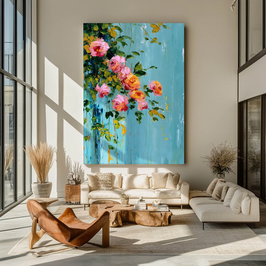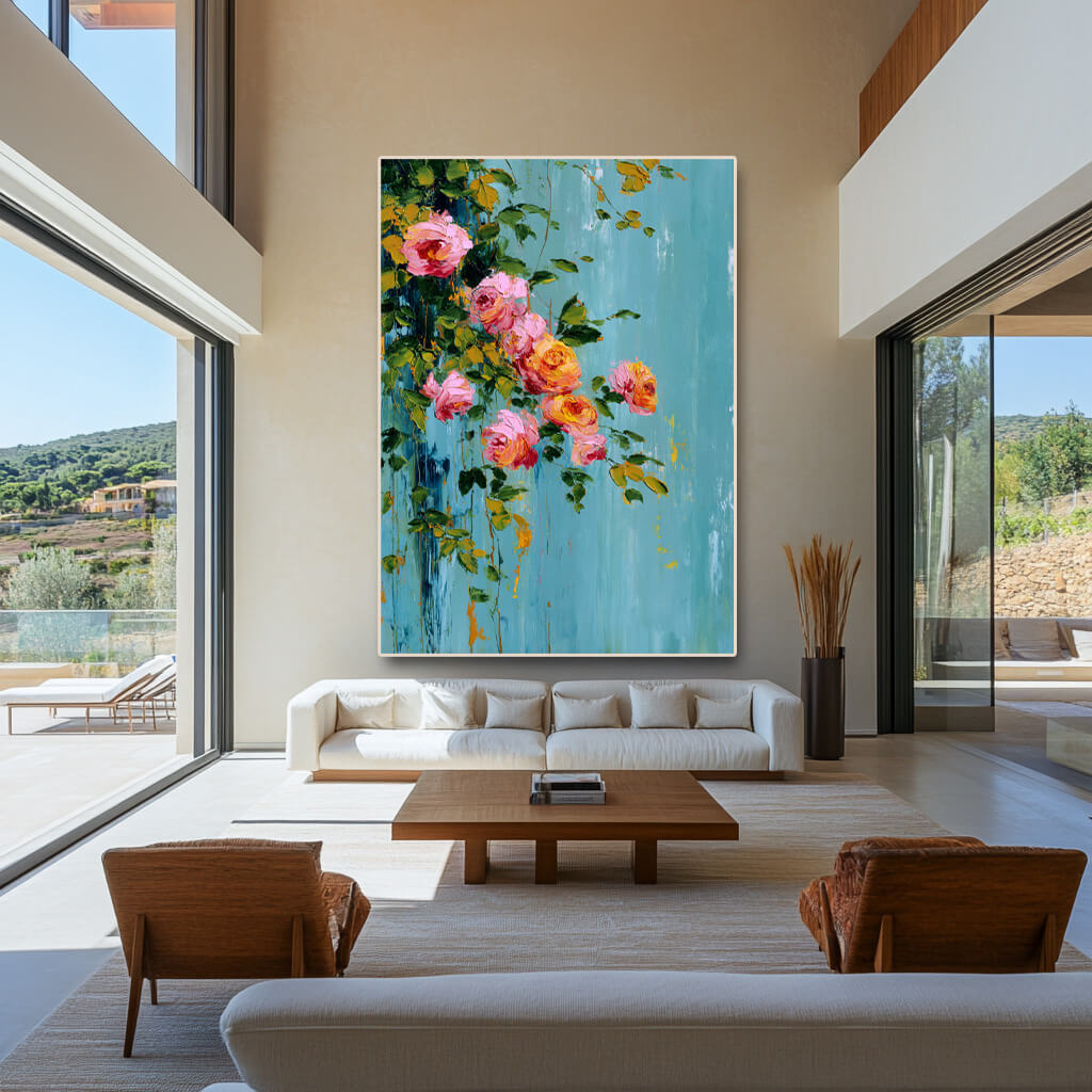 Spilling Romance - Large Floral Abstract Oil Painting