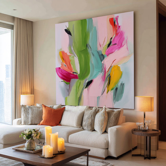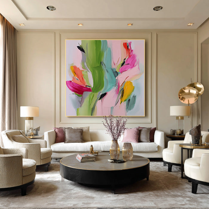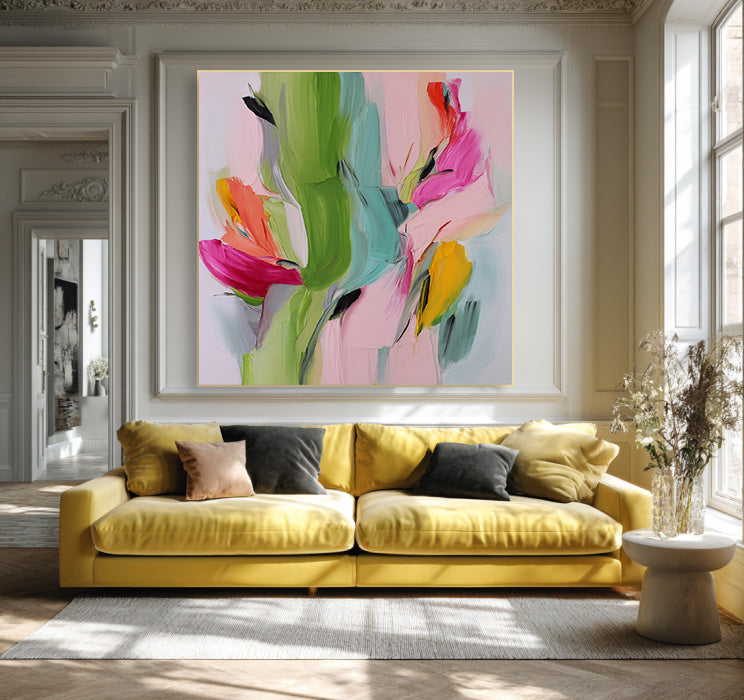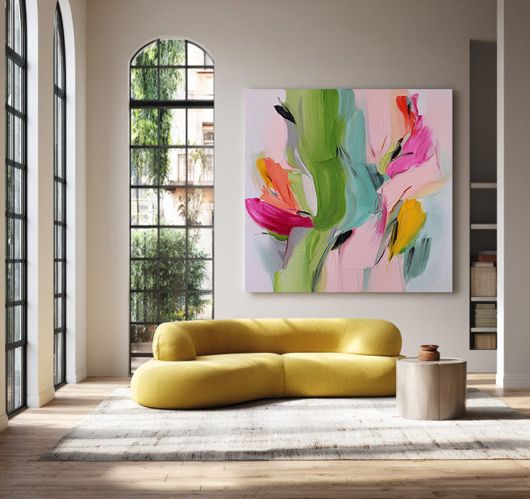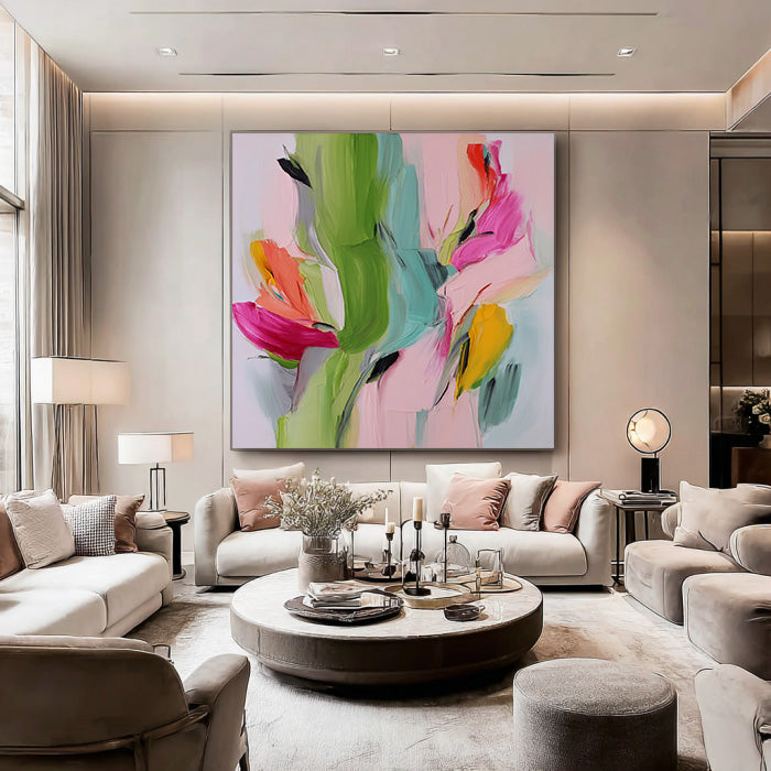 Spring Torrent - olorful Textured Hand Painted Abstract Floral Wall Art