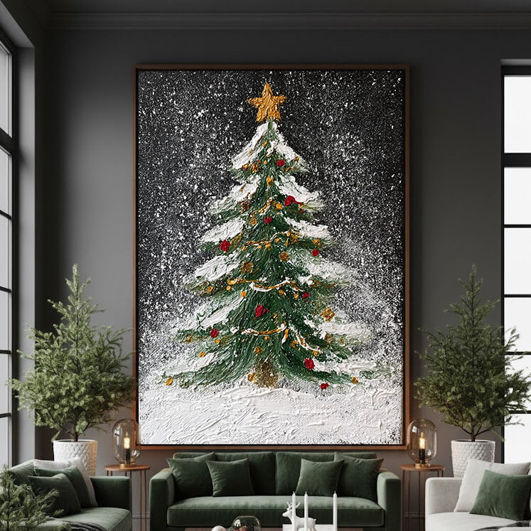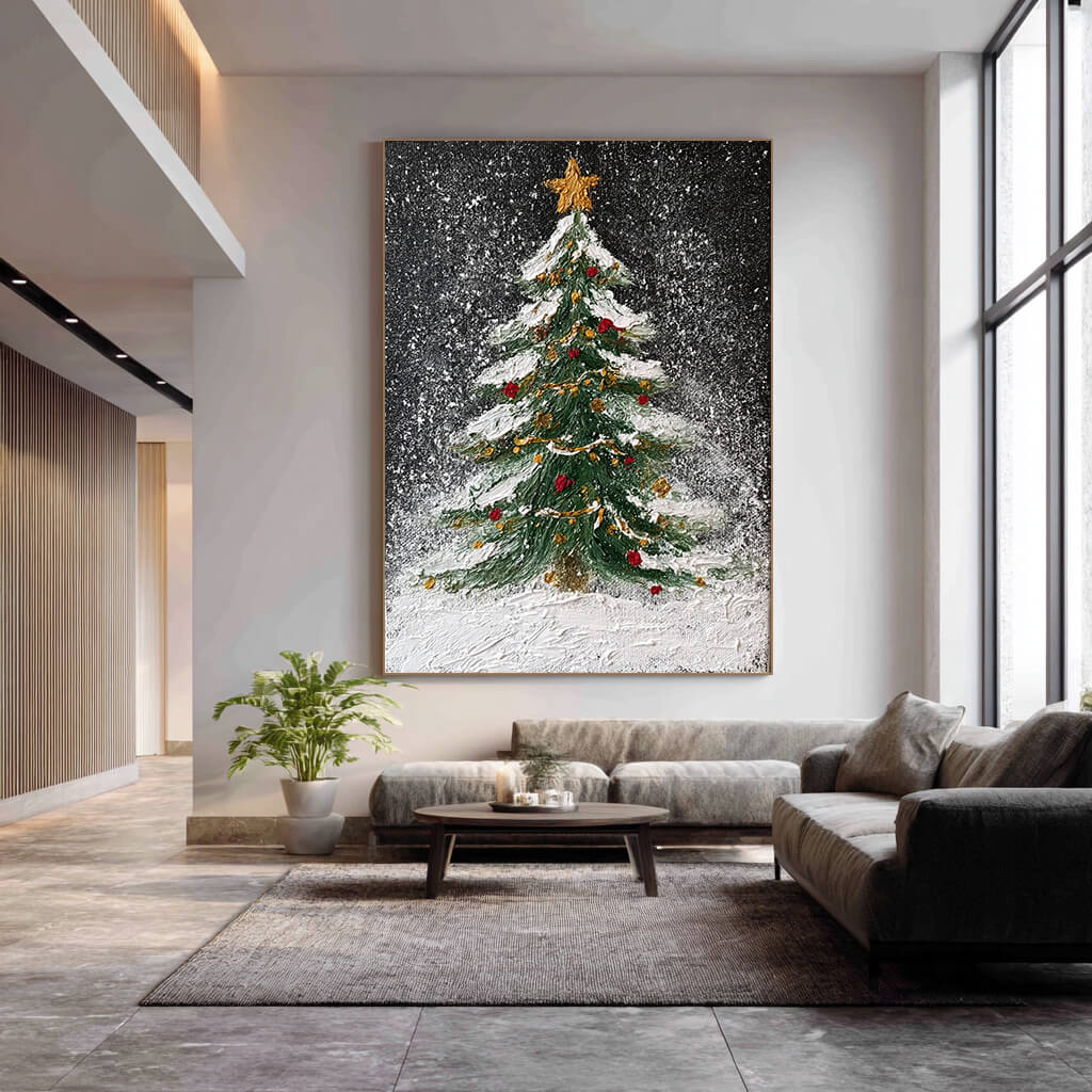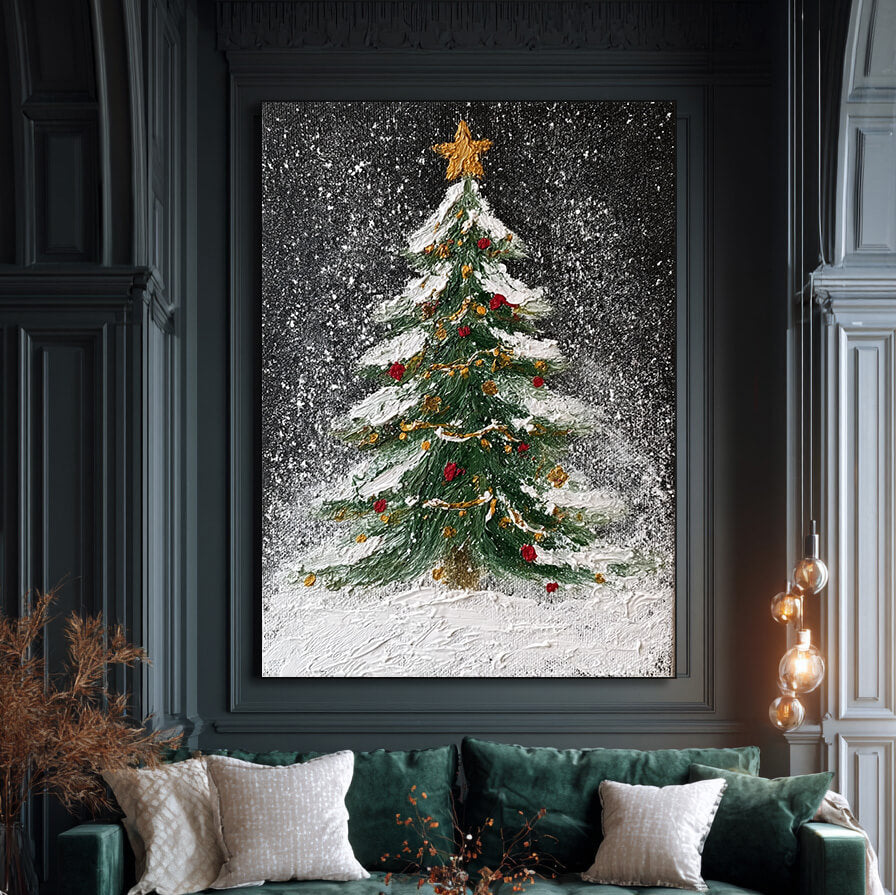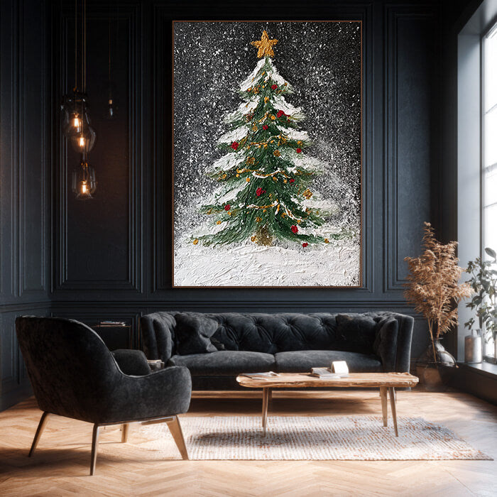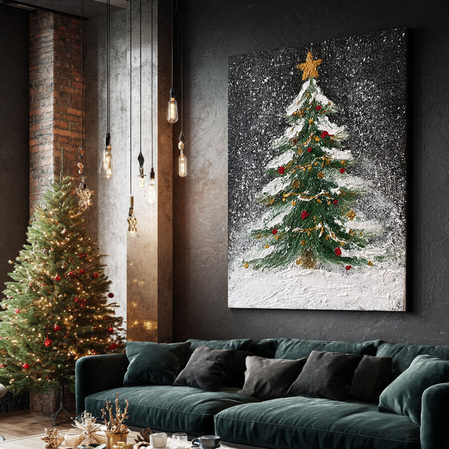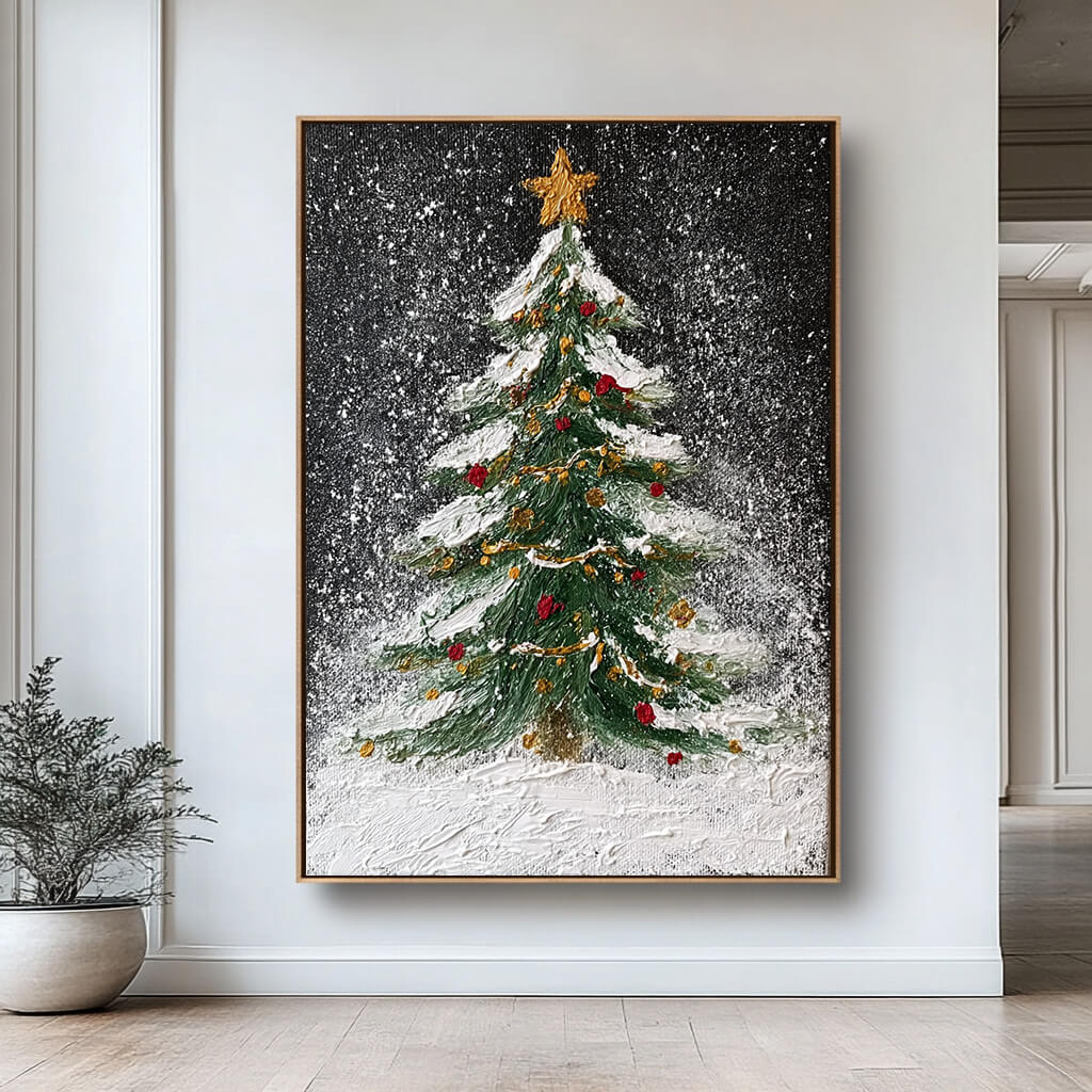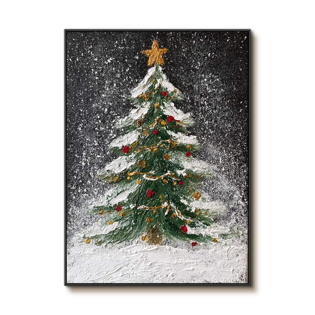 Starry Night Tree I - Textured Christmas Tree Canvas Art