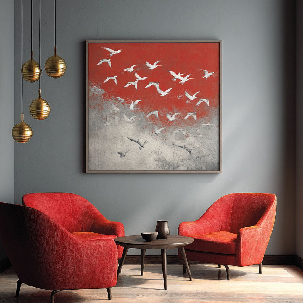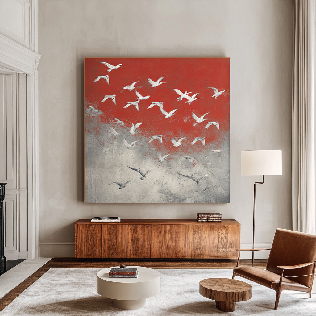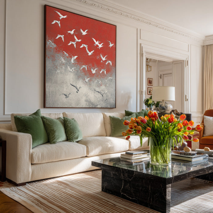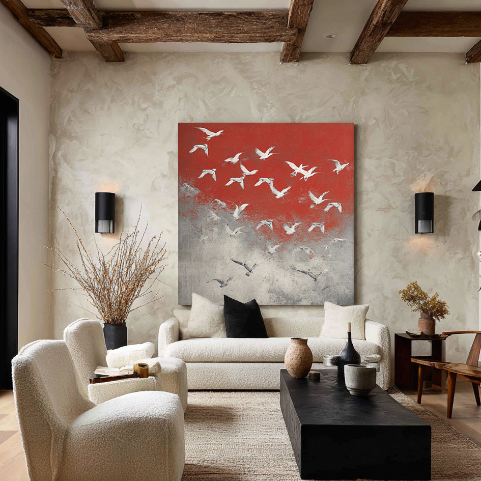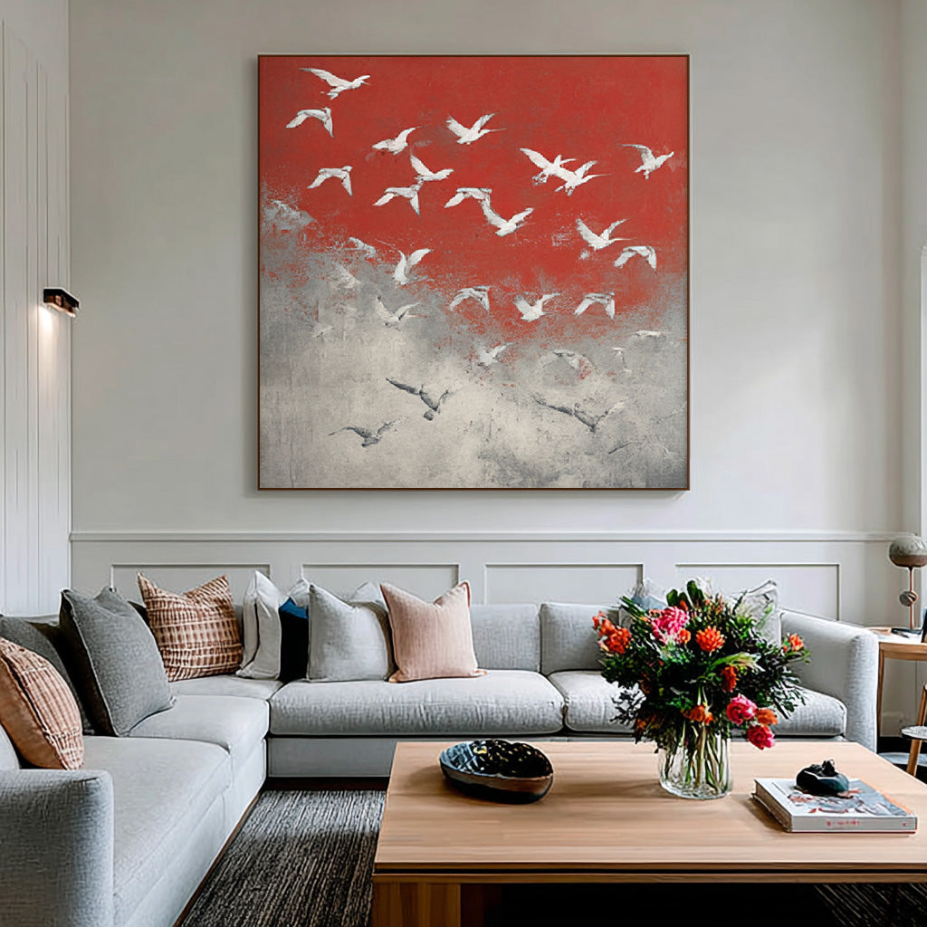 Symphony of Birds - Large Abstract Flying Birds Oil Painting