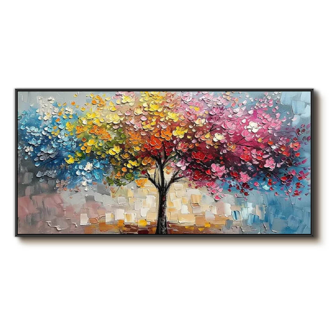 Colorful Tree Wall Art - Large Textured Palette Knife Canvas for Living Room or Bedroom D鑼卌or - Tree of Spectrum - Hues Art Lab